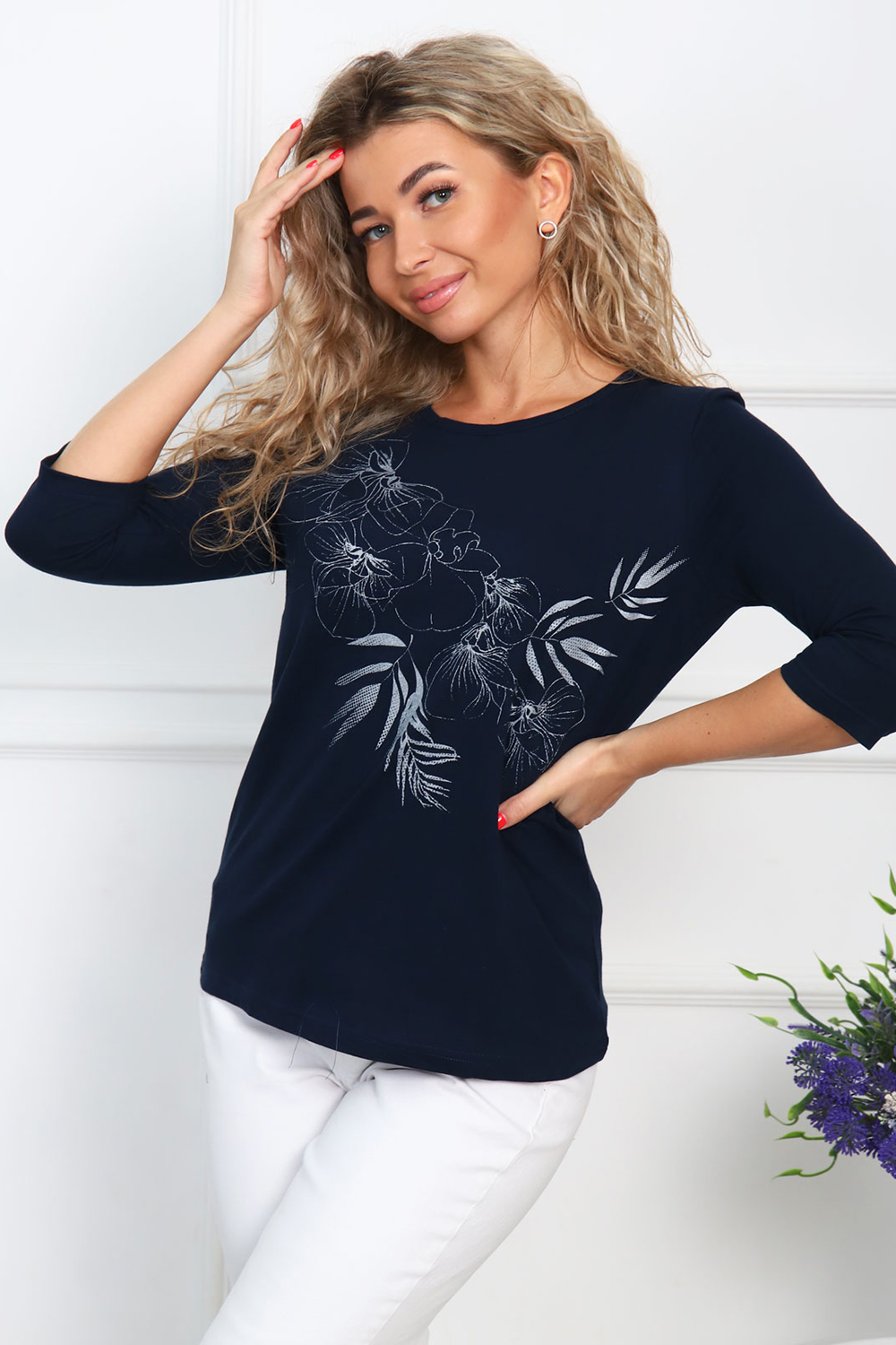 Артикул: 109201 Т.синий+цветочный мотив